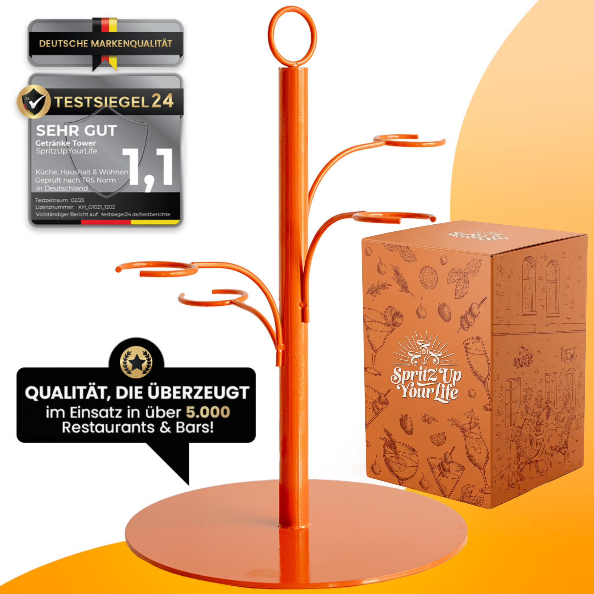 Der SpritzUpYourLife Aperol Tree passt perfekt auf kleine Tische, Balkone oder Hausbars. Ob Dinnerparty, Mädelsabend oder Sundowner auf der Terrasse – mit dem kleinen Spritz Tower servierst du deine Drinks stilvoll und begeisterst deine Gäste!